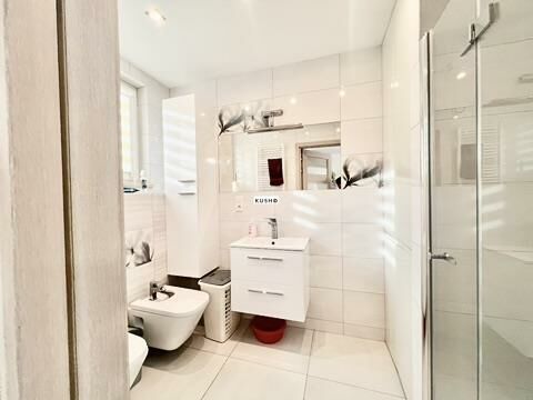 2 parking spots (one covered) Fiber-optic internet, TV, monitoring, intercom Viessmann dual-function gas boiler, central heating Mechanical ventilation with heat recovery (rekuperacja) Fully landscaped garden, tool shed, storage Energy-efficient: EU 47.54 kWh/m per year Plastic windows, wooden stairs, solid wood interior doors